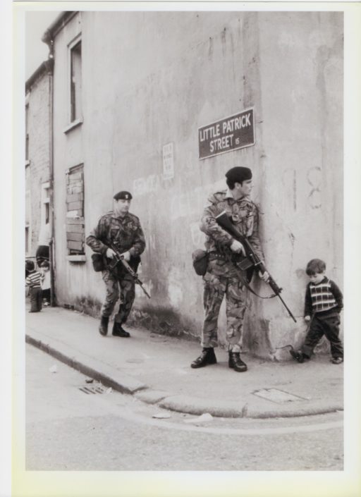 Stills captured from film clips of incidents from the Troubles edited by Peter Heathwood, 1970s – 1990s
